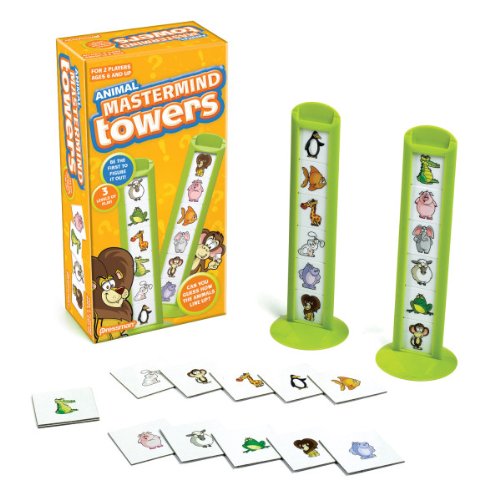 pAmimal Mastermind Towers Game Both players secretly stack their animal tiles in their towers Who can guess the order of their opponents tiles first to win On your turn you ask a yesno question like Is the lion below the giraffe Two towers two tower bases 12 plastic tiles and 12 cardboard Read More..