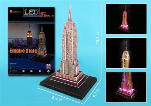 Empire State Building 3D Puzzle with LED lighting 38 Pieces Museum quality with authentic details No glue required Daron 3D Empire State LED Puzzle 38 Pieces 64 X 47 X 151 Ages 5 3D puzzle with LED lights No glue required Museum quality 131 x 91 x 24 inches 16 pounds - 18 pounds Ma Read More..